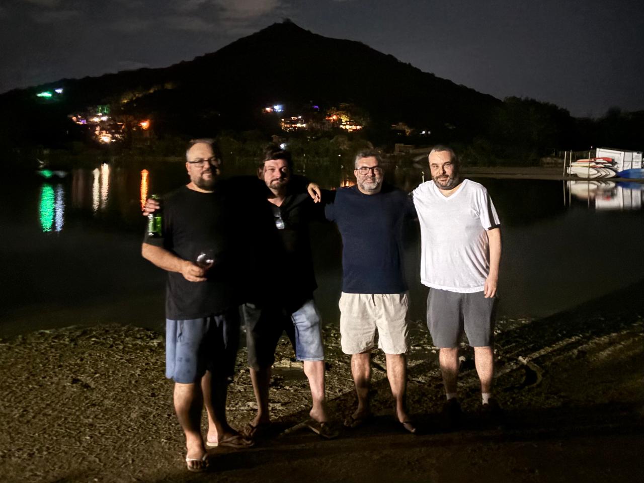 2013: vencedores da temporada - Nico (2), Sandro (3) e Gian (1) - com Binho ao fundo, na funo de "papagaio de pirata"