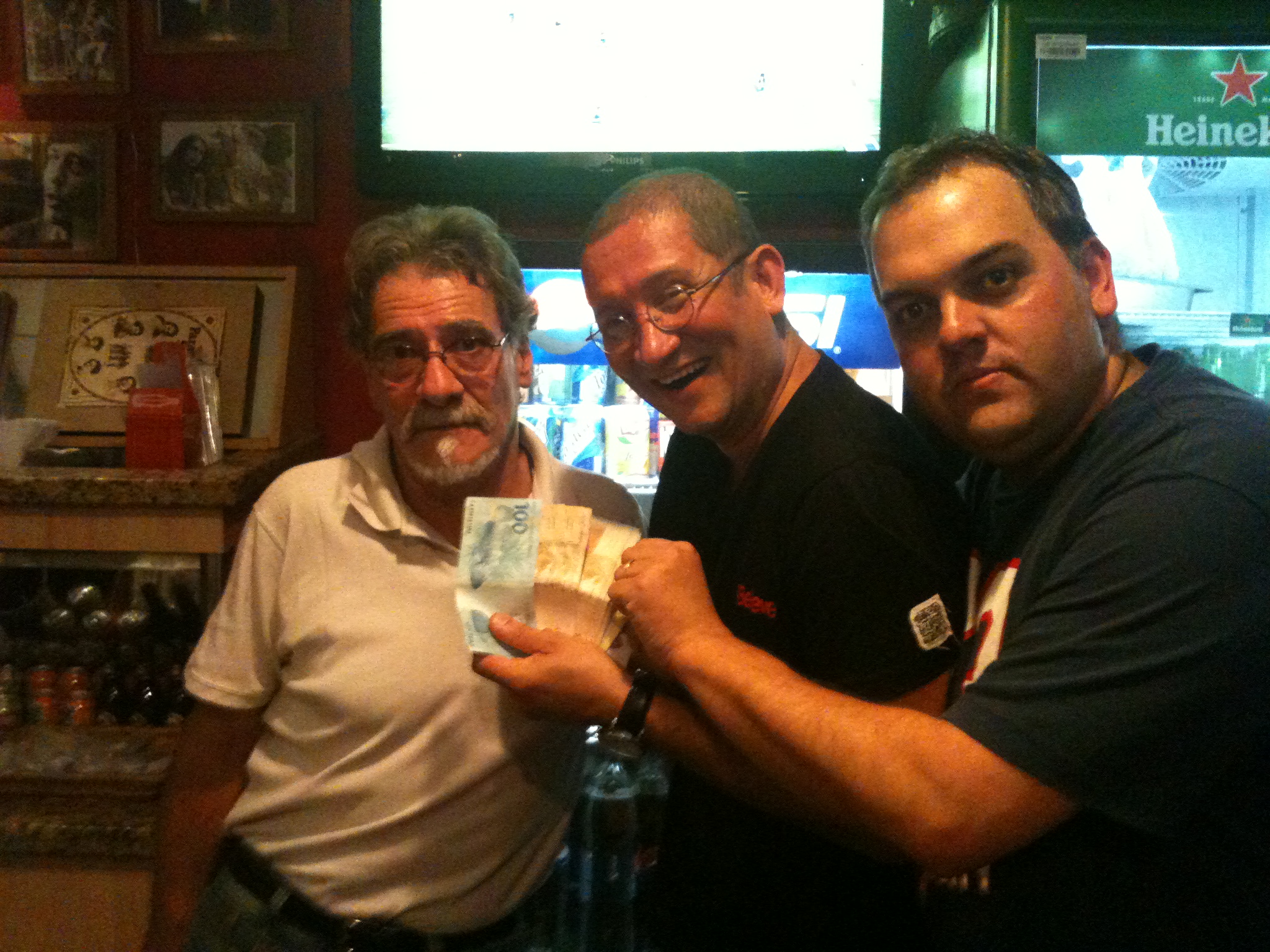 2013: vencedores da temporada - Nico (2 ), Sandro (3 ) e Gian (1 ) - com Binho ao fundo, na fun? de "papagaio de pirata"